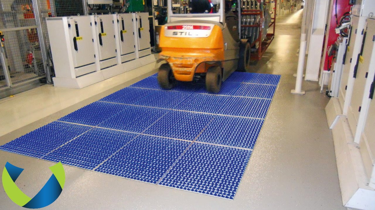 These waterhog forklift mats have a multi directional heavy duty herringbone pattern and durable rubber edging that hold up well even within high traffic areas.