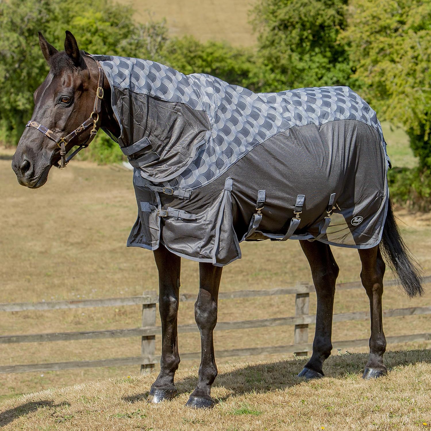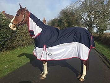 Our silver blue fly rug has a stretchable neck cover for ultimate comfort and elasticated leg straps the beach like feel of the colours really brings summer to life.