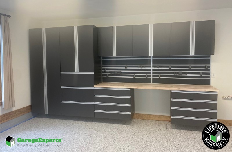View larger residential 2 car garage epoxy flooring and cabinet storage solution in virginia beach va.